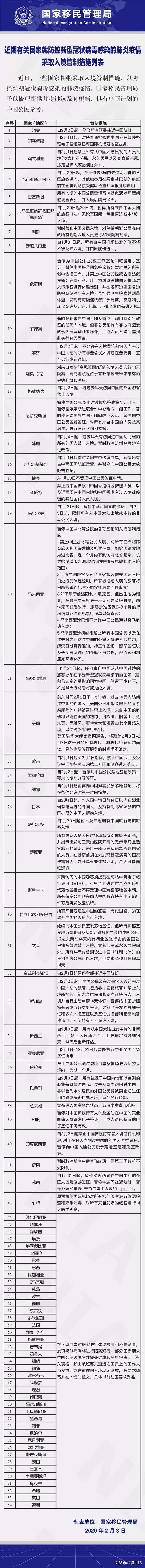 其他国家对中国出入境管制措施(2月3日版)