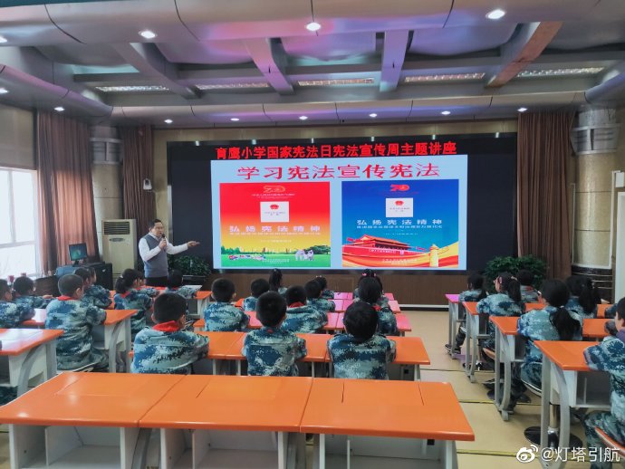 全体人员以合唱国歌拉开了活动的序幕,律所赵作明主任,用生动的语言和精美的课件,通过宪法日的由来、宪法的地位、宪法的作用、宪法的影响等4个版块,将法条与生动鲜明的案例相结合,使原本深奥的宪法知识变得通俗易懂。同时,赵作明律师还通过有奖趣味法律小知识问答环节,调动台下听课的积极性,使得同学们在轻松愉快的氛围中学习到了丰富的宪法知识。课堂上,赵律师采用视频为主、图文为辅的方式授课,轻松有趣的授课方式让同学们听得津津有味。课后,大家纷纷表示虽然只有短短一小时的时间,但却是满满的宪法“干货”,大家因此对于尊法、学法、守法、用法又有了更加深刻认识。